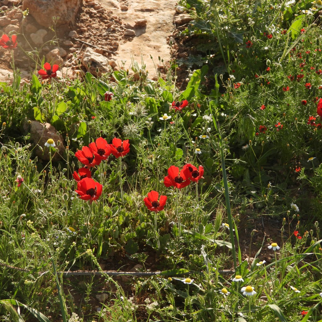 Sweeping wadis, fields of bright yellow mustard, fiery red poppies, spiky green aqub, grasses turning beige in the late spring sun